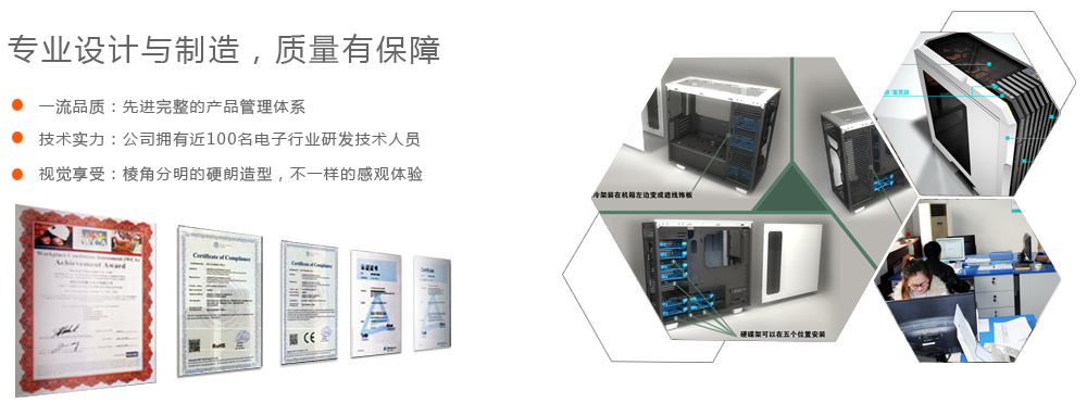 冠訊電子科技有限公司是一家專業的電腦機箱研發、生產、銷售為一體 的高科技企業。公司擁有雄厚的技術力量和經濟實力,工廠面積達20000 平方米,現有員工近600余人,其中研發技術人員近100人’ 公司電腦散 熱類產品年產能3000K以上,電腦機箱年產能30萬臺,現已成為國內為數 不多同時具備強大研發、生產能力的電腦機箱知名廠商。